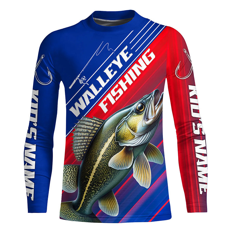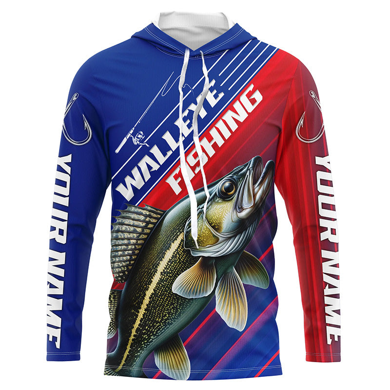 Custom Walleye Fishing Long Sleeve Tournament Shirts, Red White And Blue Walleye Fishing Jerseys IPHW6313