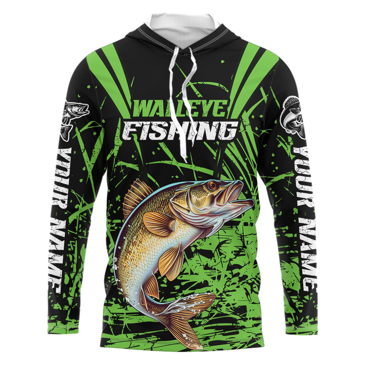 Customized Walleye Fishing Long Sleeve Tournament Shirt, Walleye Fishing Gifts For Fisherman | Green IPHW6647