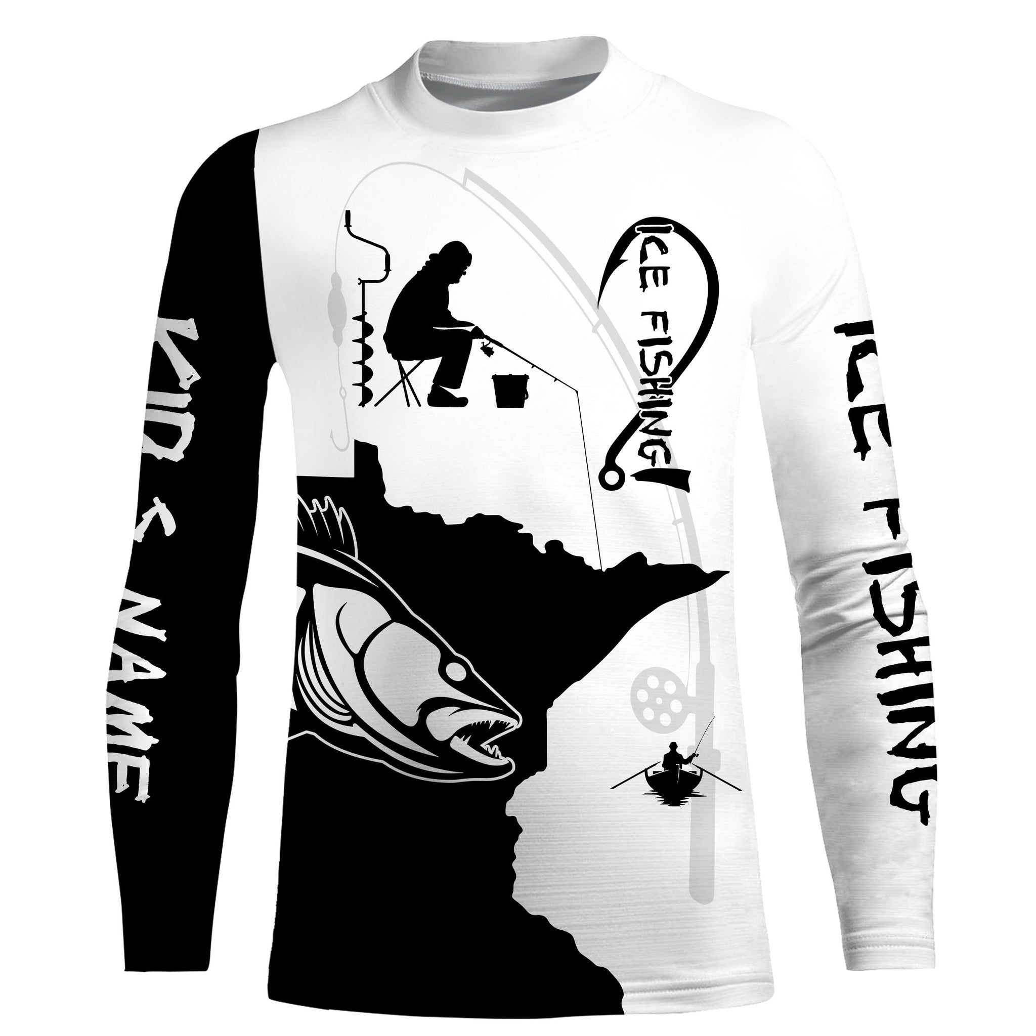 Minnesota ice fishing Walleye winter fishing Performance black and white fishing Shirts UV Protection Upf 30+ NQS2505