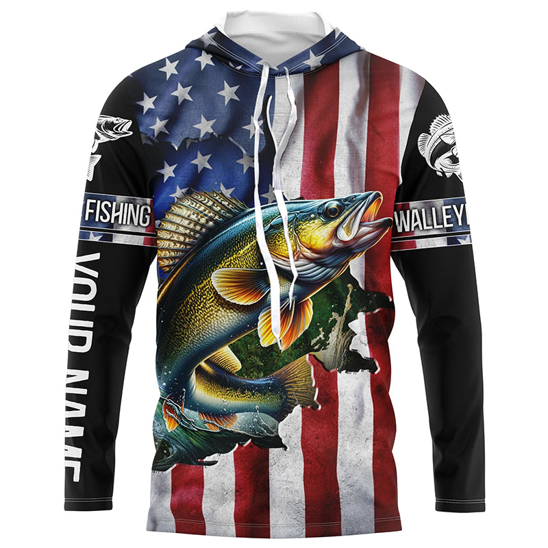 Walleye fishing American Flag Patriotic Fourth of July personalized Walleye fishing tournament shirts NQS5121