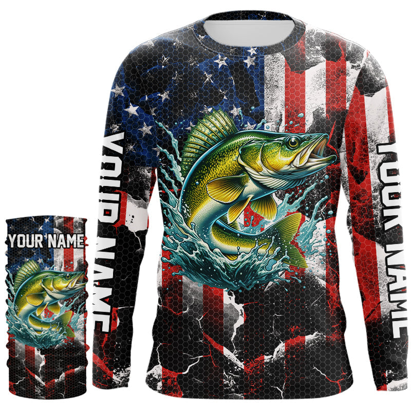 Walleye fishing black American flag Custom UV protection performance long sleeve fishing jerseys NQS9277