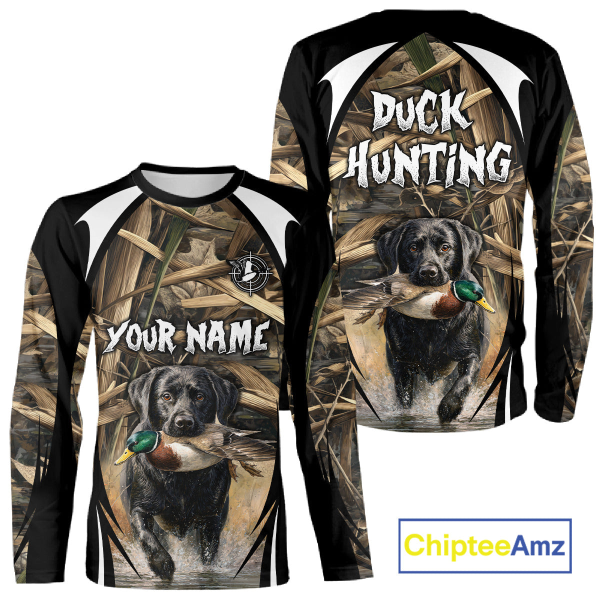 Duck Hunting with Black Lab Camo 3D All Over Printed Shirts, Camouflage Duck Hunting Clothing NBT206