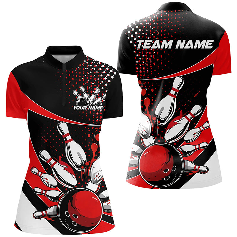 ✔️ Custom Women's Bowling Shirts Our uniquely designed bowling polo and quarter-zip shirts are ideal for proud female bowlers who want to make a bold statement. With a stylish form and distinctive design, these shirts set you apart from the rest, highlighting your passion and confidence in bowling. Add your personal touch to create a one-of-a-kind shirt that carries your unique imprint.