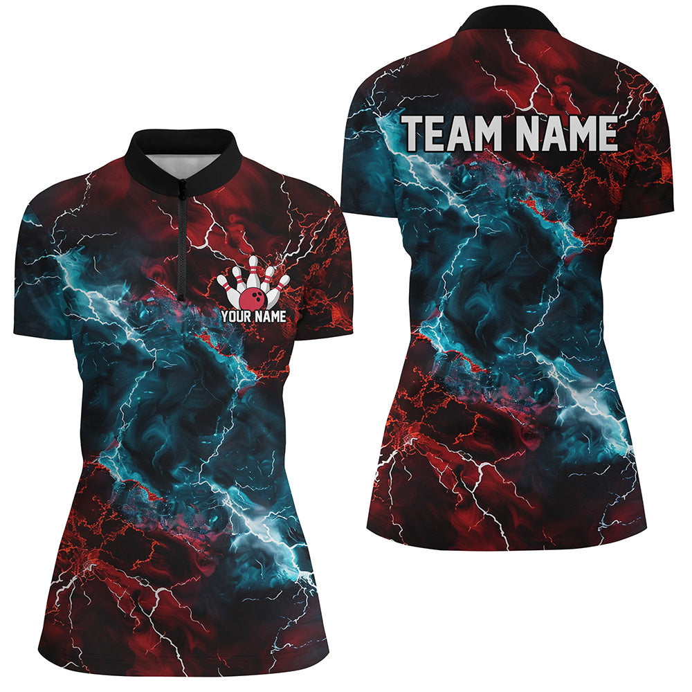 Blue And Red Thunder Lightning Custom Bowling Uniforms, Patriotic Bowling Shirts For Women IPHW7316