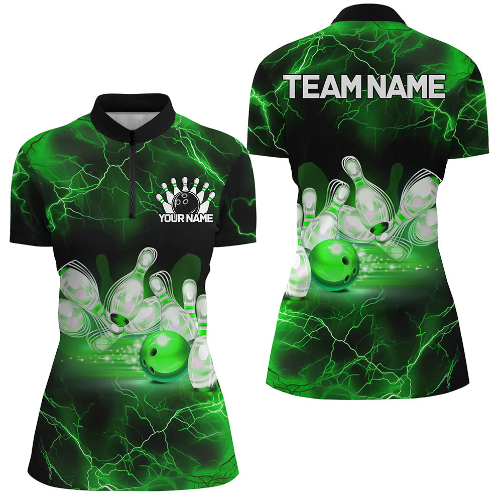 Green Thunder Lightning Custom Ladies Bowling Shirts, Bowling League Shirts Bowling Jersey IPHW7333