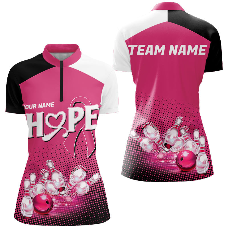 Custom Pink Ribbon Breast Cancer Bowling Shirts For Women, Hope Bowling Team Jerseys IPHW7514