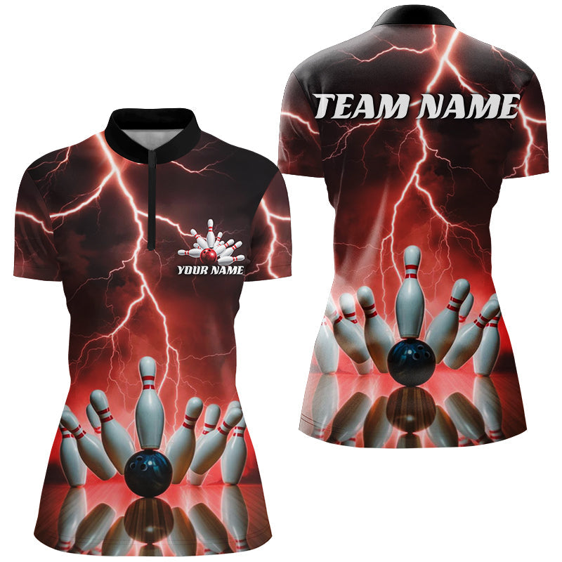 Red Thunder Lightning Custom Ladies Bowling Shirts, Bowling League Shirts Bowling Jersey IPHW7531