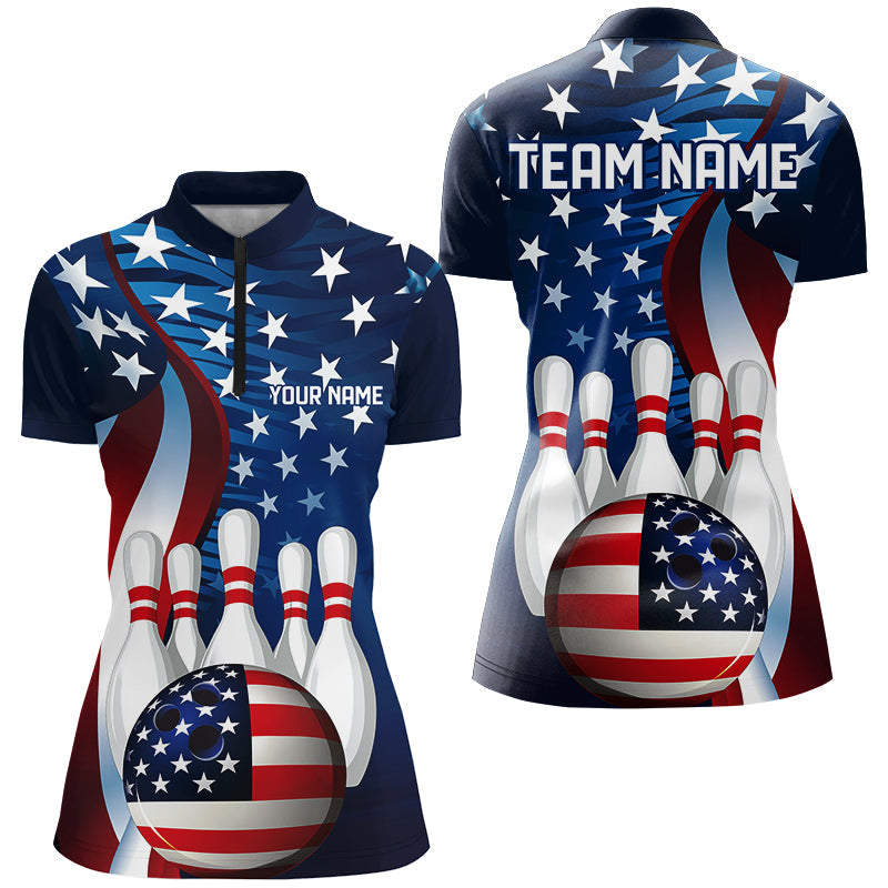 American Flag Custom Patriotic Bowling Shirts For Women, Team Bowling League Shirts Uniform IPHW7555