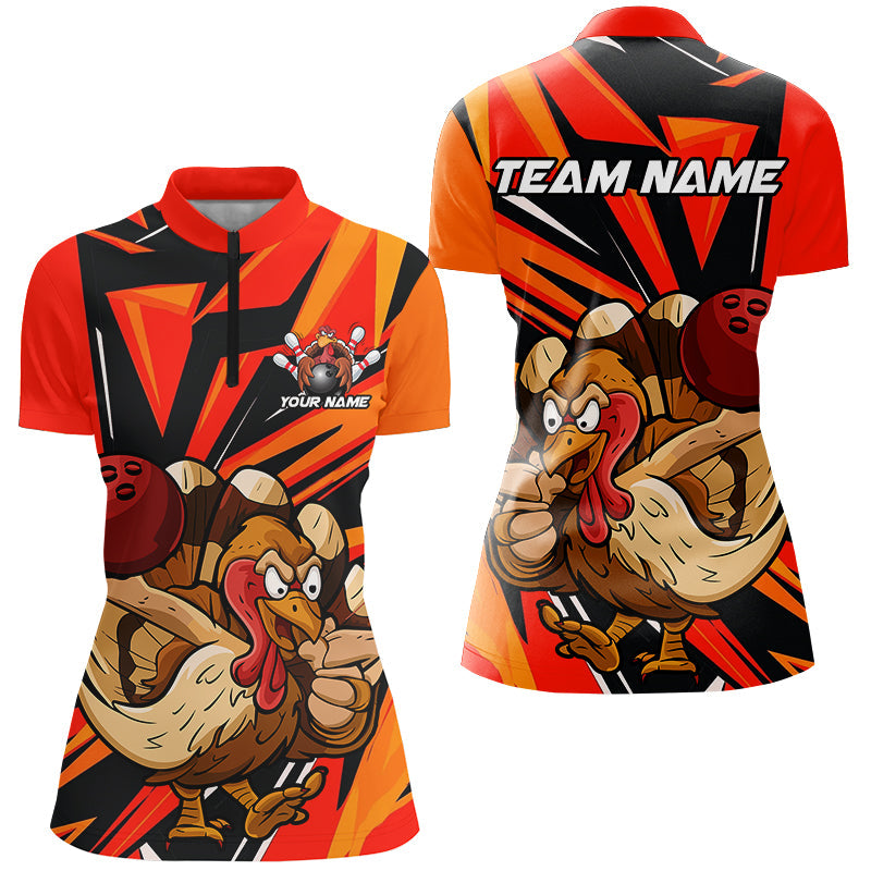 Custom Funny Turkey Bowling Shirts For Women, Orange Thanksgiving Bowling Shirt Team Uniform IPHW7587