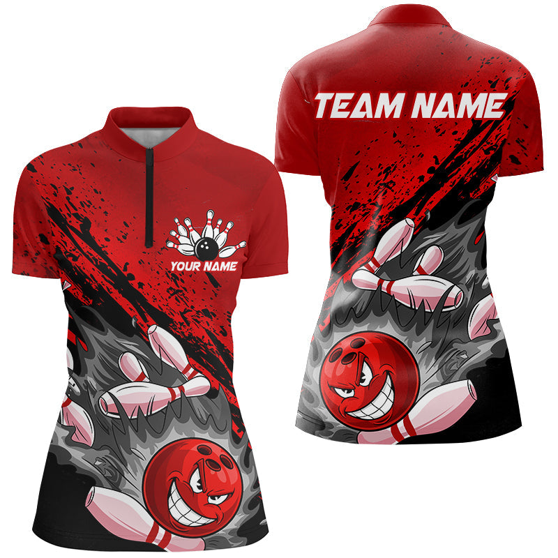 ✔️ Custom Women's Bowling Shirts Our uniquely designed bowling polo and quarter-zip shirts are ideal for proud female bowlers who want to make a bold statement. With a stylish form and distinctive design, these shirts set you apart from the rest, highlighting your passion and confidence in bowling. Add your personal touch to create a one-of-a-kind shirt that carries your unique imprint.