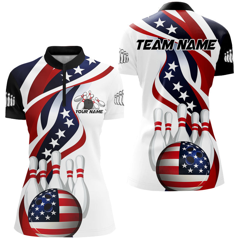 American Flag Custom Patriotic Bowling Shirts For Women, Team Bowling League Shirts Uniform IPHW7636