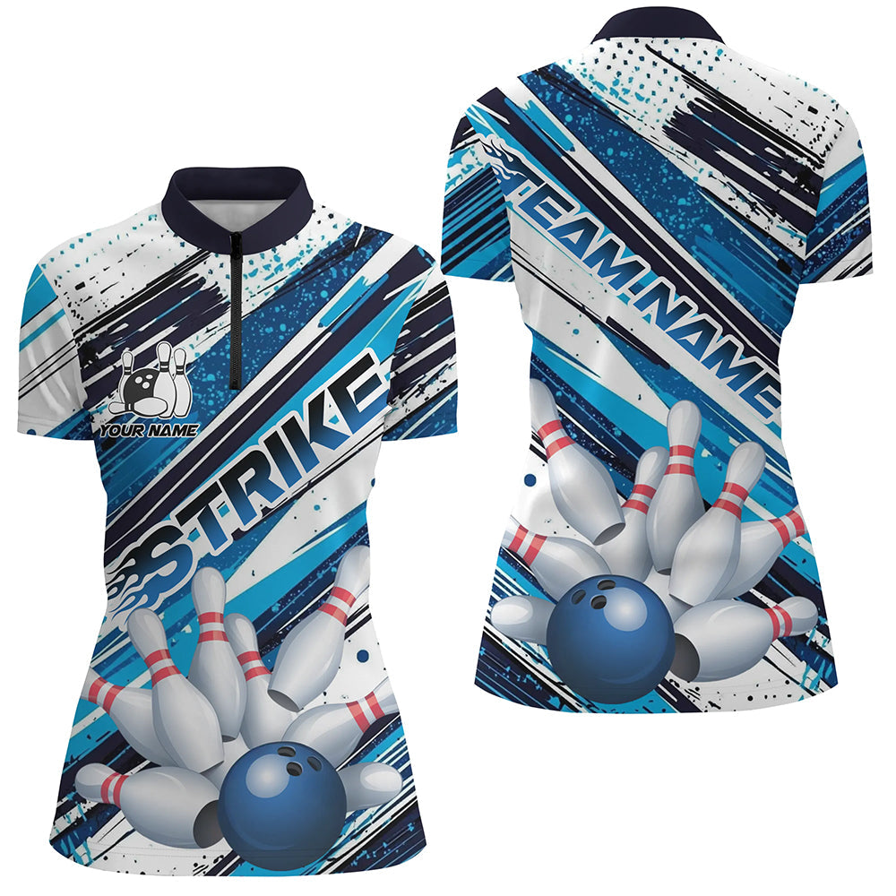 ✔️ Custom Women's Bowling Shirts Our uniquely designed bowling polo and quarter-zip shirts are ideal for proud female bowlers who want to make a bold statement. With a stylish form and distinctive design, these shirts set you apart from the rest, highlighting your passion and confidence in bowling. Add your personal touch to create a one-of-a-kind shirt that carries your unique imprint.