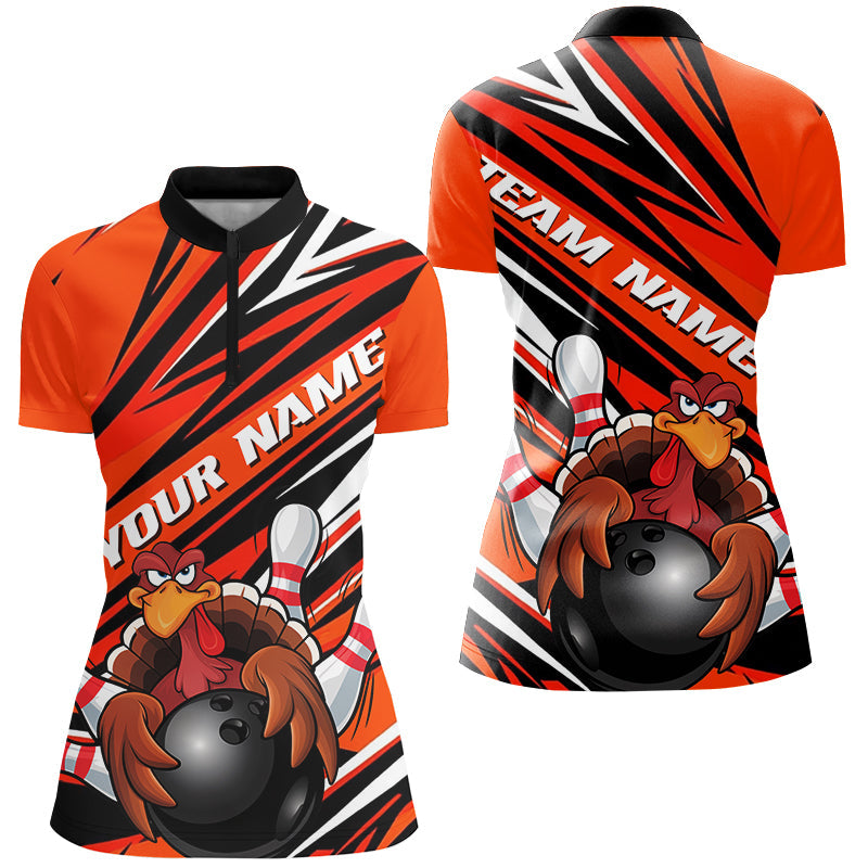 Black And Orange Custom Turkey Ladies Bowling Shirts, Thanksgiving Bowling Team Outfits IPHW7658