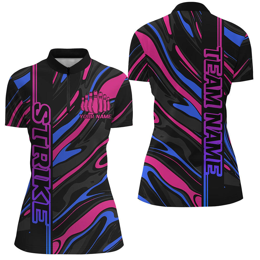 ✔️ Custom Women's Bowling Shirts Our uniquely designed bowling polo and quarter-zip shirts are ideal for proud female bowlers who want to make a bold statement. With a stylish form and distinctive design, these shirts set you apart from the rest, highlighting your passion and confidence in bowling. Add your personal touch to create a one-of-a-kind shirt that carries your unique imprint.