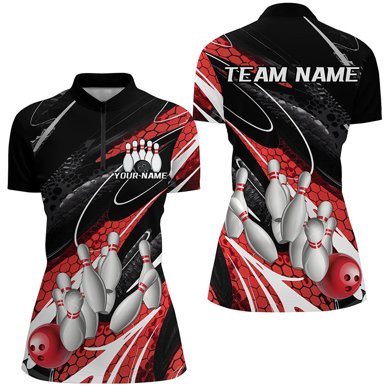 Black And Red Custom Ladies Bowling Shirts, Bowling Tournament Bowling League Shirt IPHW7700