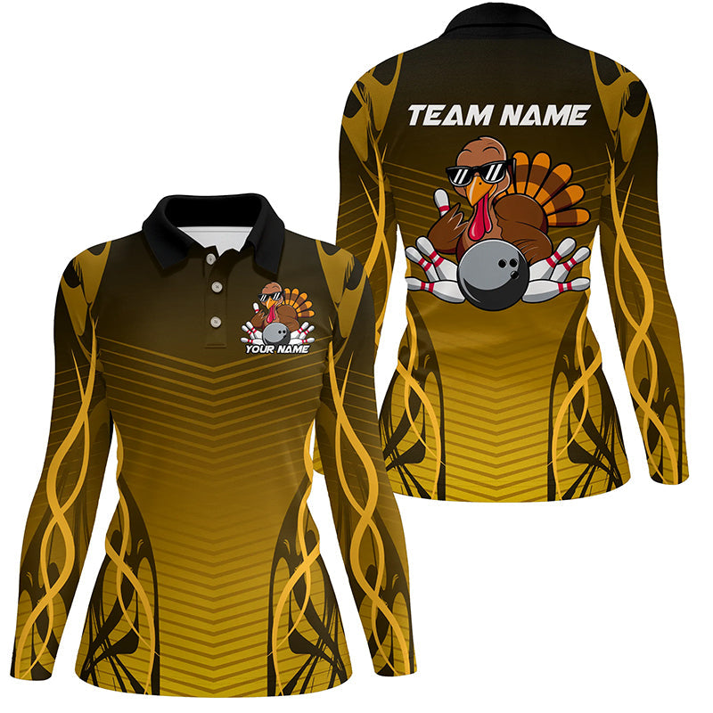 Custom Funny Turkey Bowling Team Shirts For Women, Thanksgiving Bowling Uniform Outfit IPHW7873