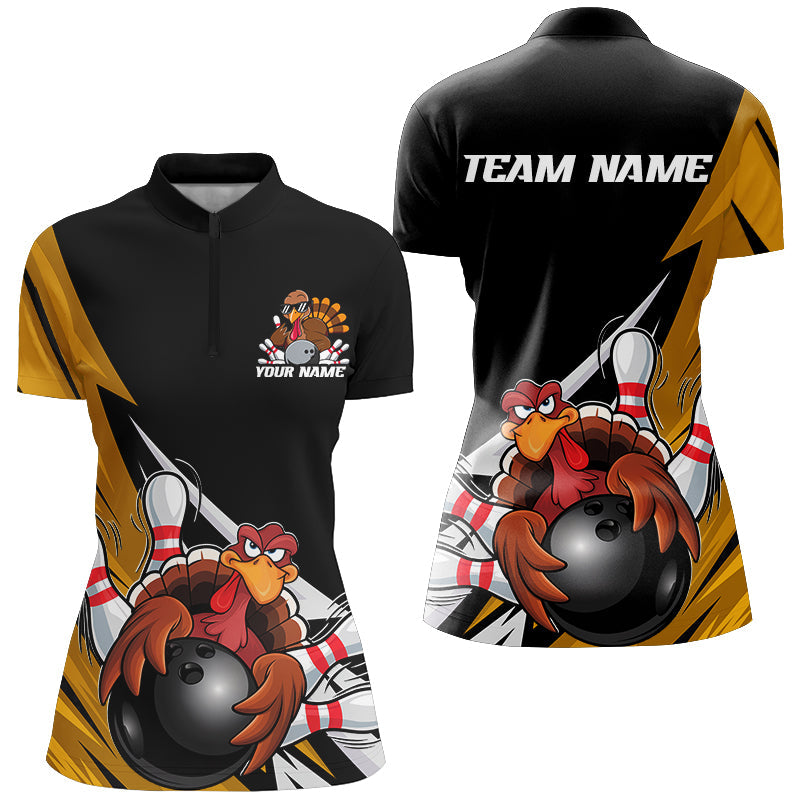 Black And Yellow Custom Funny Turkey Bowling Team Shirts For Women, Thanksgiving Outfit IPHW7876