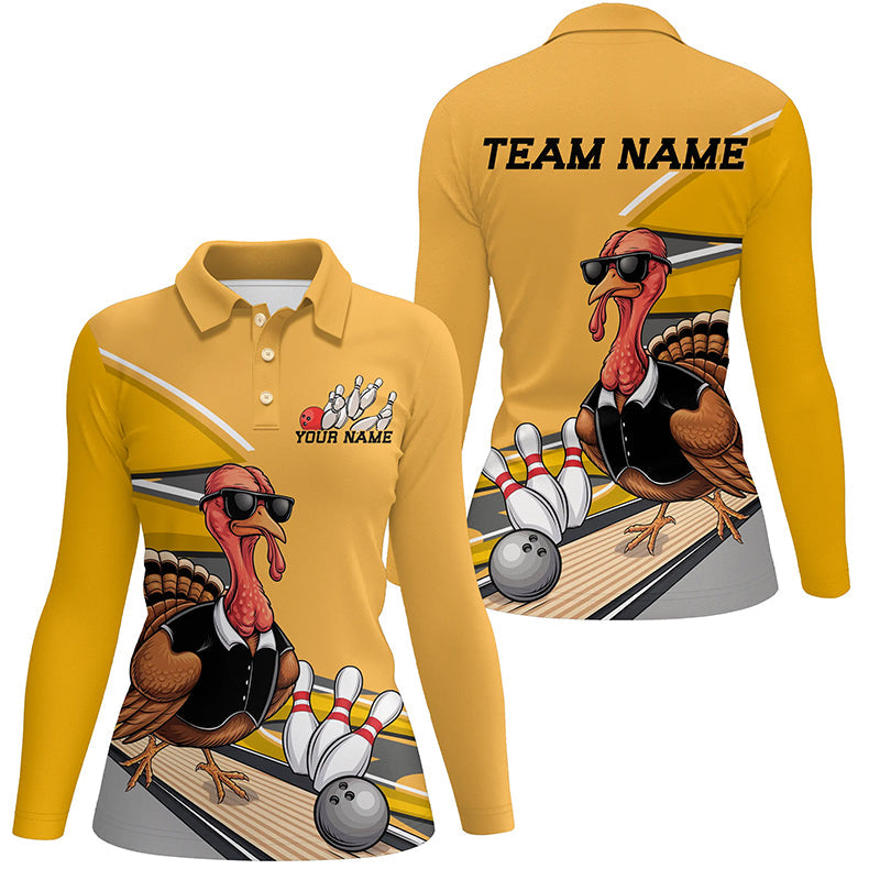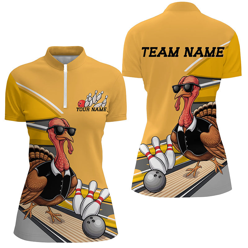 Custom Yellow Funny Turkey Bowling Team Shirts For Women, Thanksgiving Bowler Outfits IPHW7885