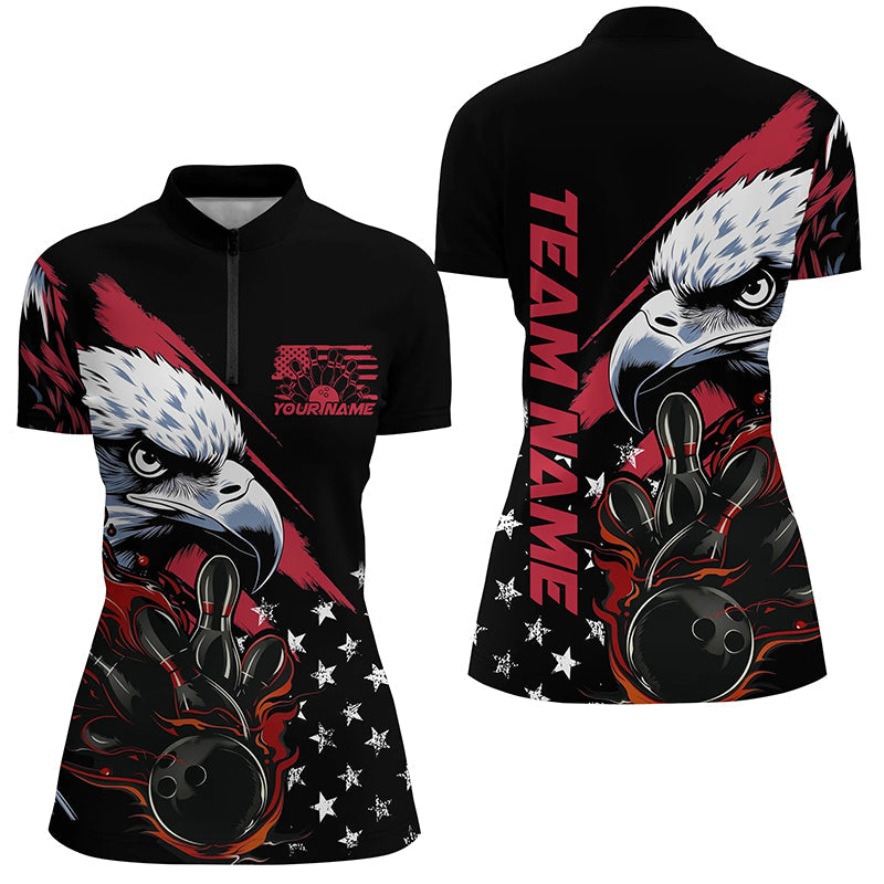 American Flag Eagle Custom Patriotic US Flame Bowling Shirts For Women, Bowling Team Uniform IPHW7923