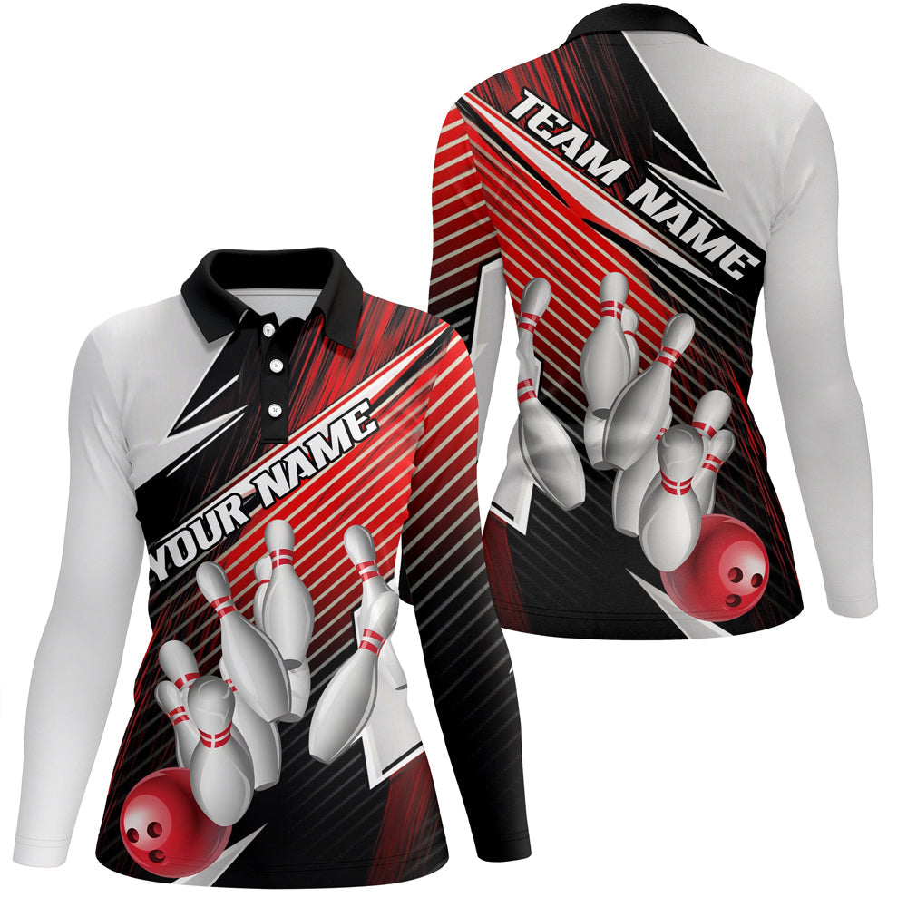 Black And Red Custom Bowling Team Shirts For Women, Bowling Tournament Bowling League Shirt IPHW7935