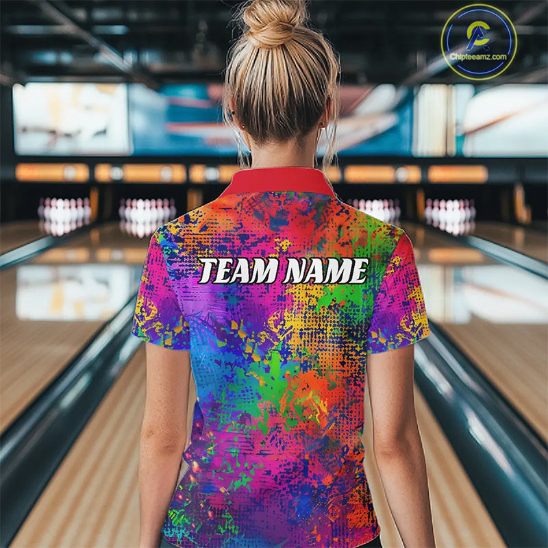 Custom Colorful Bowling Polo Shirts For Women, Pride Colors Ladies Bowling Shirts Outfit IPHW6788