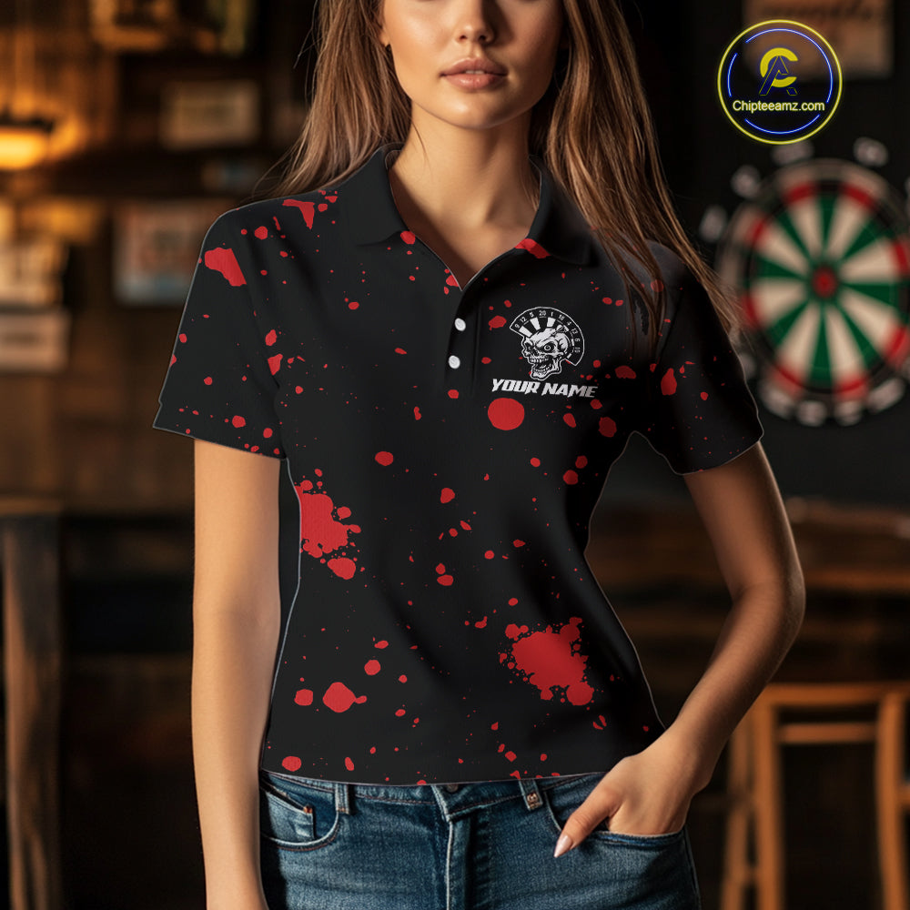 Black And Red Paint Skull Dart Shirts For Women Custom Dart Jersey, Darts Team Shirt Polo & 1/4 Zip TDM4086