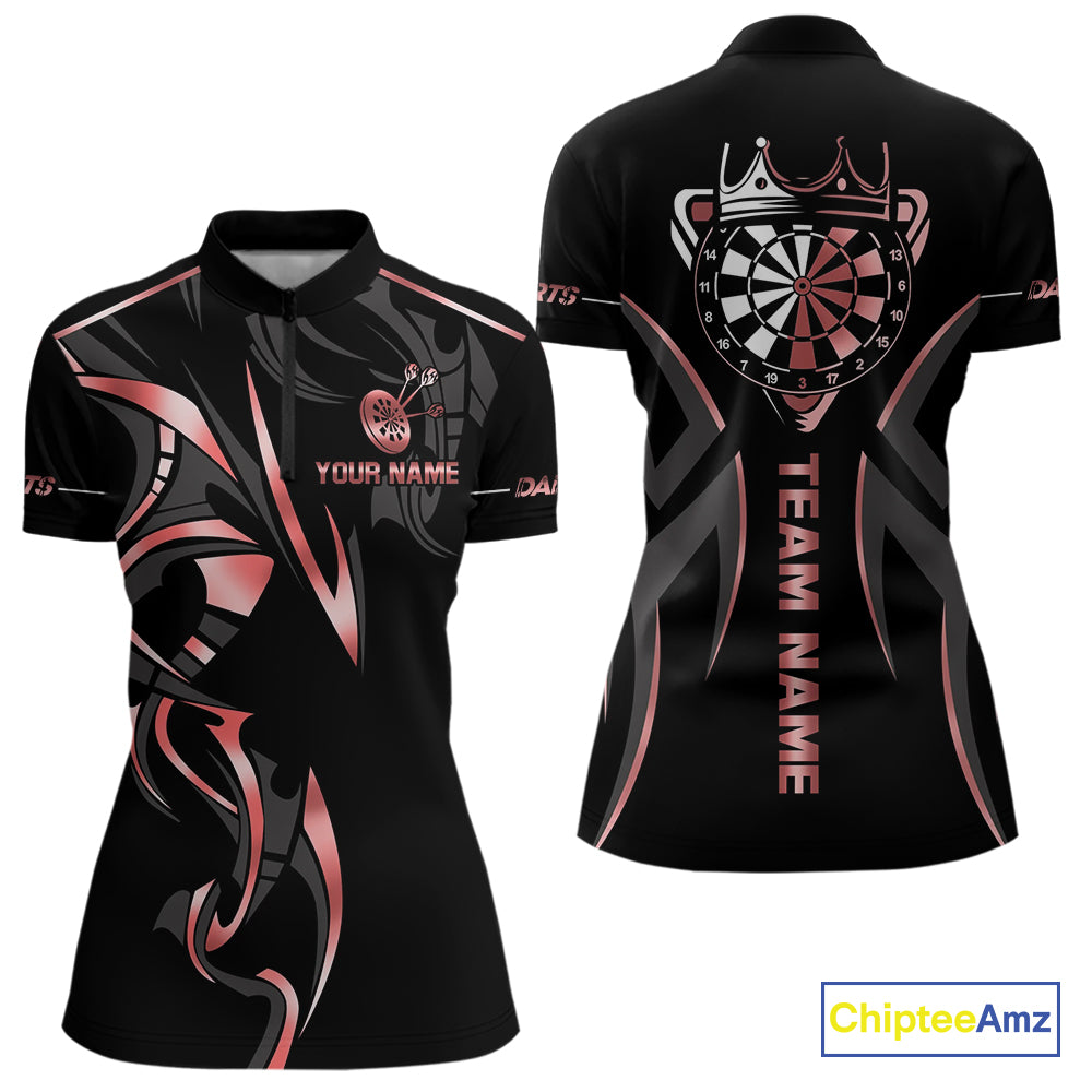 Black And Red Dartboard Crown Dart Shirts For Women Custom Dart Jersey Team Polo & Quarter Zip TDM4091