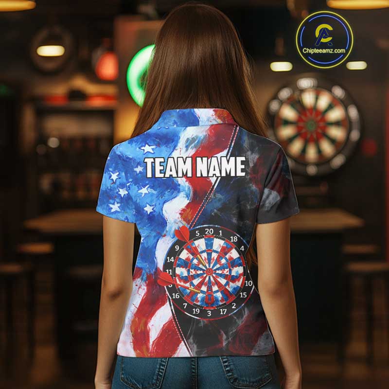 Personalized Watercolor American Flag Dart Shirts For Women Custom Patriotic Darts Team Jerseys TDM4192