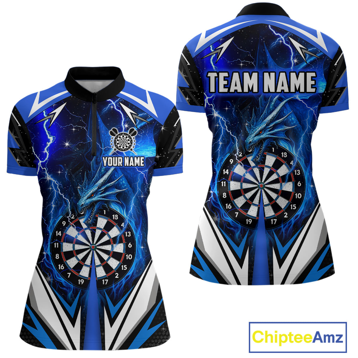 Blue Darts Jerseys Custom Thunder Lightning Dragon Dart Shirt Team Polo & Quarter Zip For Women TDM4314