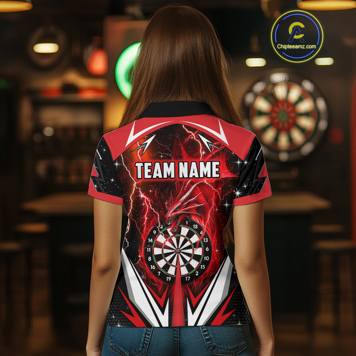 Red Darts Jerseys Custom Thunder Lightning Dragon Dart Shirt Team Polo & Quarter Zip For Women TDM4315