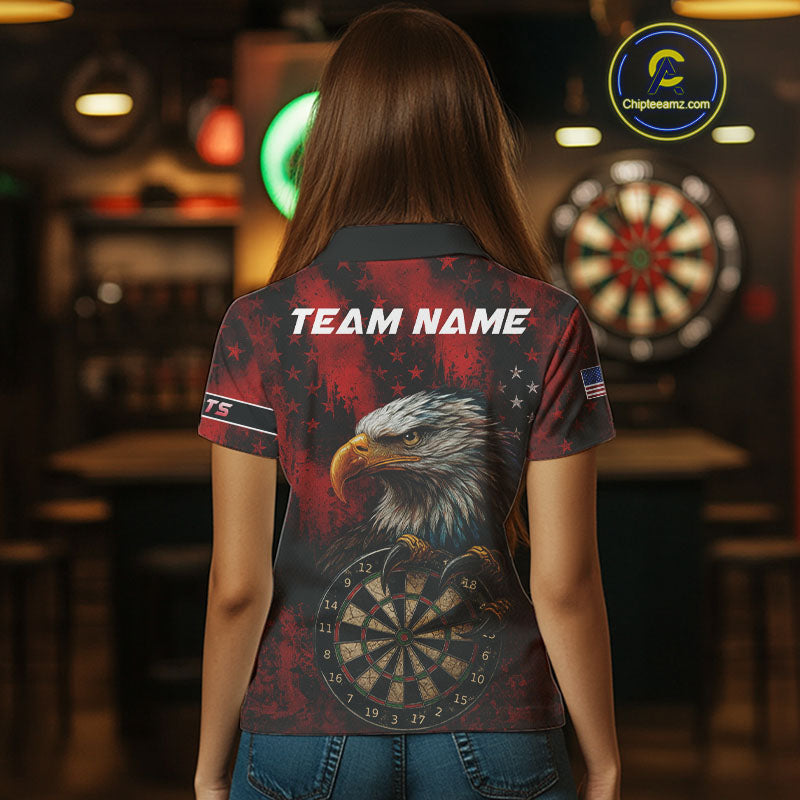 Black And Red American Flag Claw Eagle Darts Shirt For Women Custom Team Patriotic Darts Jerseys TDM4318