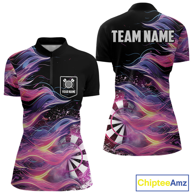 Funny Pink Flame Dart Shirt With Pocket Option For Women Custom Darts Jersey TDM4353