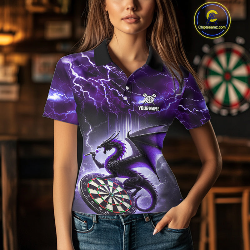 Custom Purple Thunder Lightning Dragon Darts Shirt For Women, Darts League Jersey Polo & 1/4 Zip TDM4385