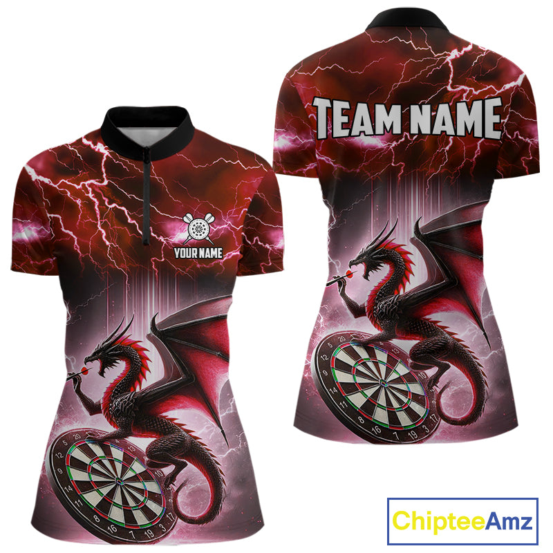 Custom Red Thunder Lightning Dragon Darts Shirt For Women, Darts League Jersey Polo & 1/4 Zip TDM4386