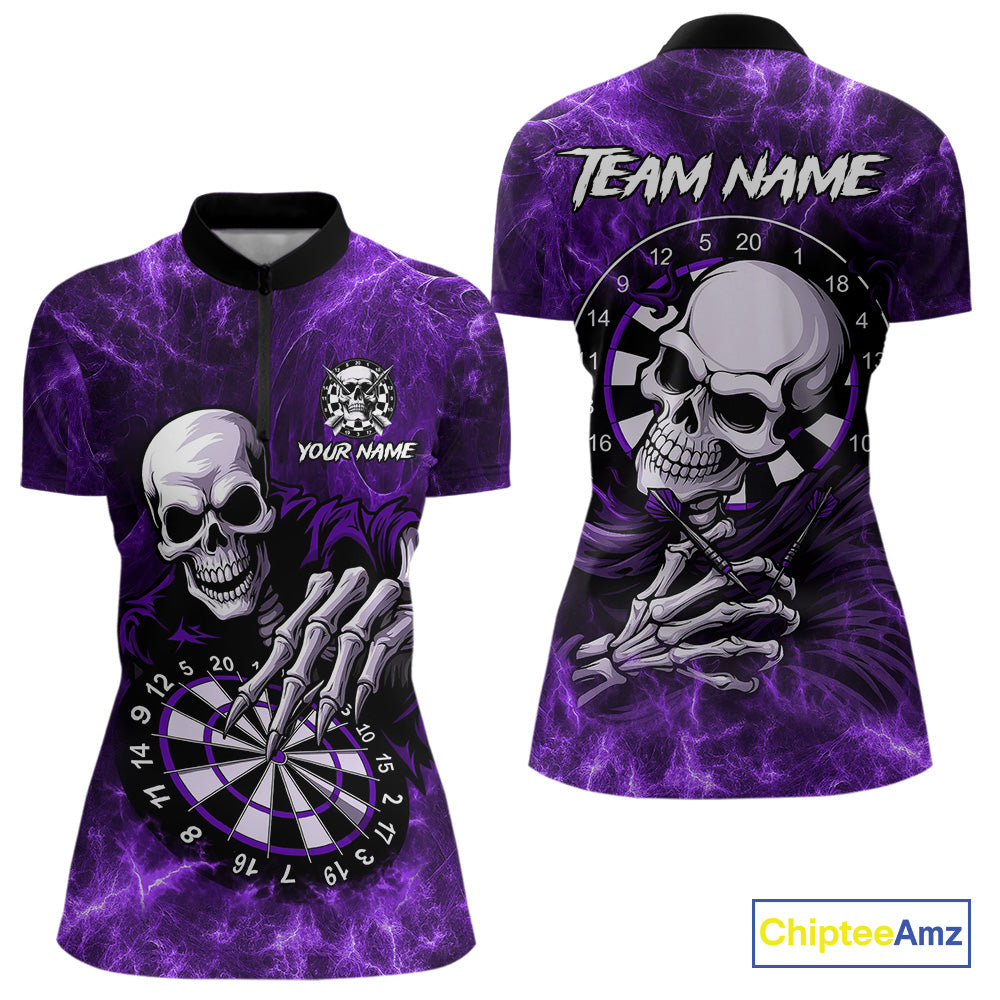Personalized Purple Funny Skeleton Darts Shirt For Women Custom Skull Darts League Team Jersey TDM4398