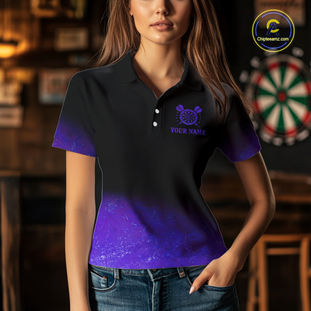 Personalized Sea Purple Gradient Darts Polo & Quarter Zip Custom Dart Shirts For Women Dart Jerseys TDM4709
