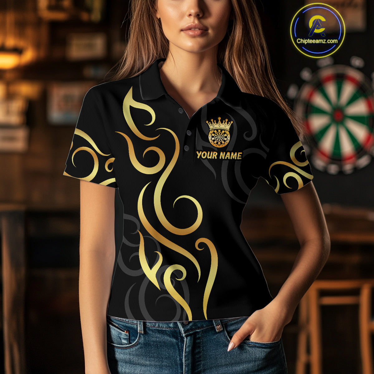 Black And Glowing Gold Dartboard Crown Tribal Darts Shirt For Women Custom Darts Team Jersey TDM4727