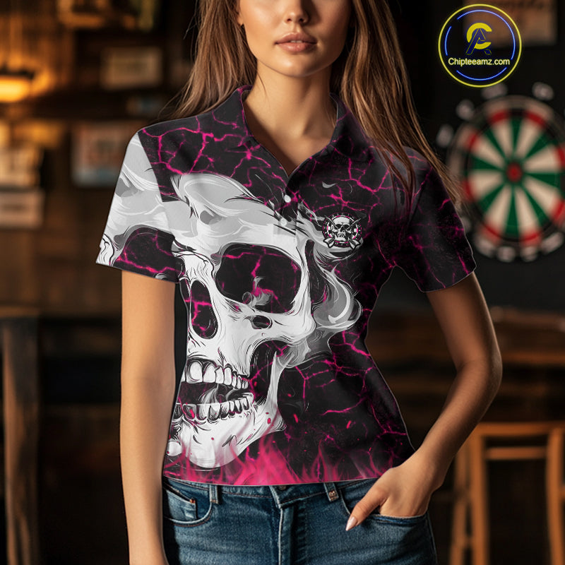 Personalized Pink 3D Fire Crack Skull Dart Shirts Custom Scary Dart Shirts For Women Dart Jersey TDM4762