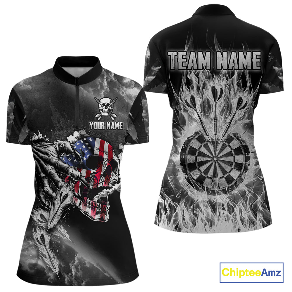 Fire Flame Darts Board American Flag Skull Dart Shirts For Women Custom Darts Team Jerseys |Grey TDM4775