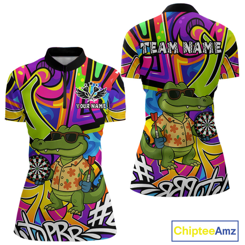 Funny Alligator Colorful Graffiti Style Custom Darts Shirt For Women Best Darts Jersey Team Outfit TDM4781