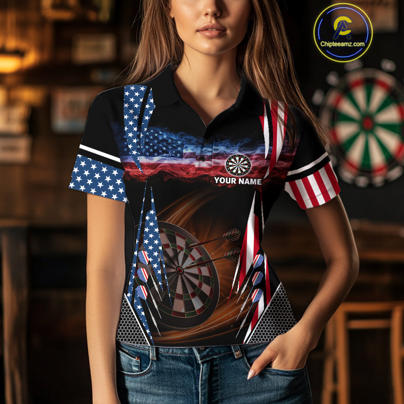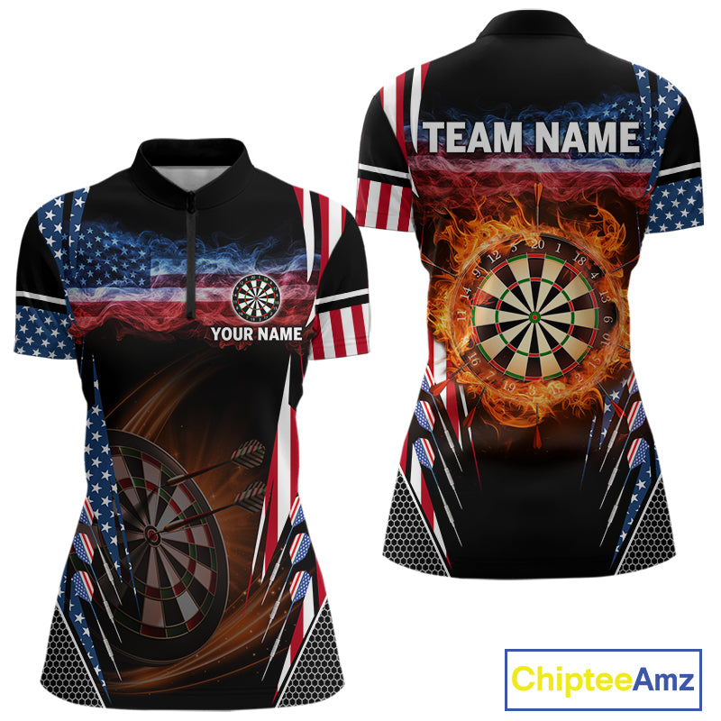 Personalized American Flag Dartboard Fire Flame Darts Shirt For Women, Patriotic Darts League Jersey TDM4796
