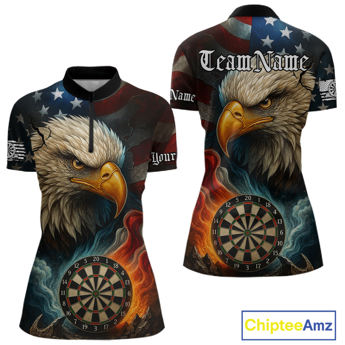 Personalized Eagle Flame Darts Shirt For Women Custom Patriotic American Flag Team Darts Jersey TDM4820
