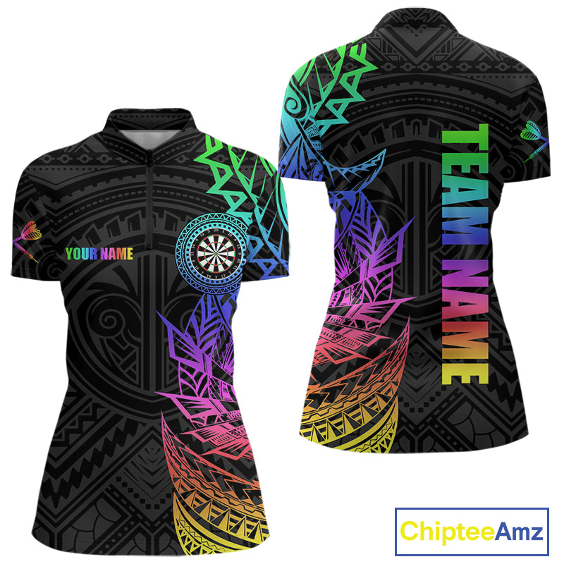 Personalized Rainbow Tribal Darts Polo & Quarter Zip Custom Darts Shirt For Women Darts Team Jersey TDM4827