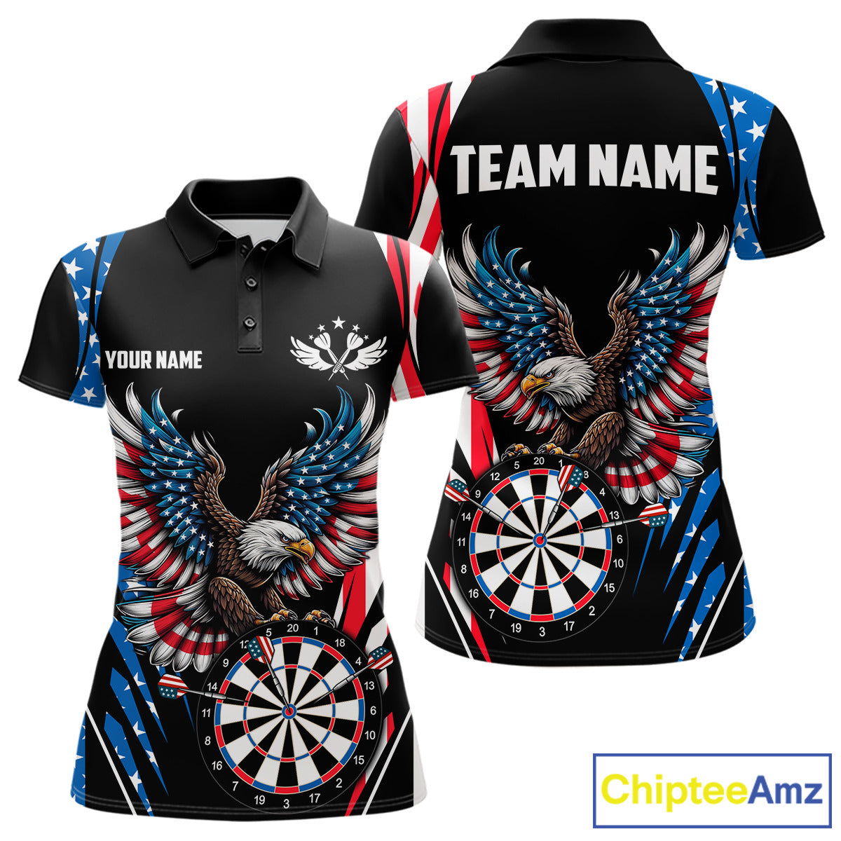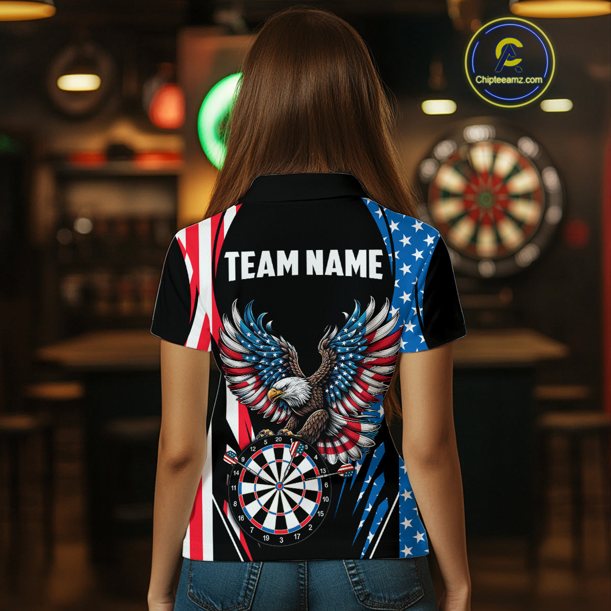 Personalized American Flag Eagle Patriotic Darts Shirt For Women Custom Darts Jersey Polo & 1/4 Zip TDM4859