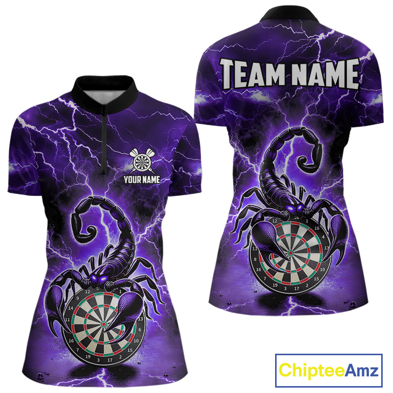 Purple Thunder Lightning Scorpion Darts Polo & 1/4 Zip For Women Custom Darts League Team Jersey TDM4865