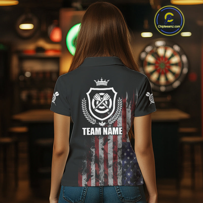 Customized American Flag Smoke Darts Shirt For Women, Patriotic Darts Jersey Team Polo & 1/4 Zip TDM4887