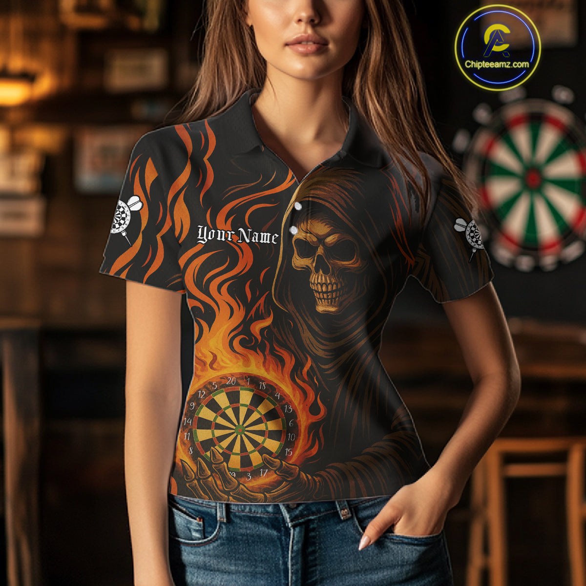 Personalized Flaming Grim Reaper Darts Shirt For Women Custom Dart Jersey Funny Halloween Dart Gift TDM4909