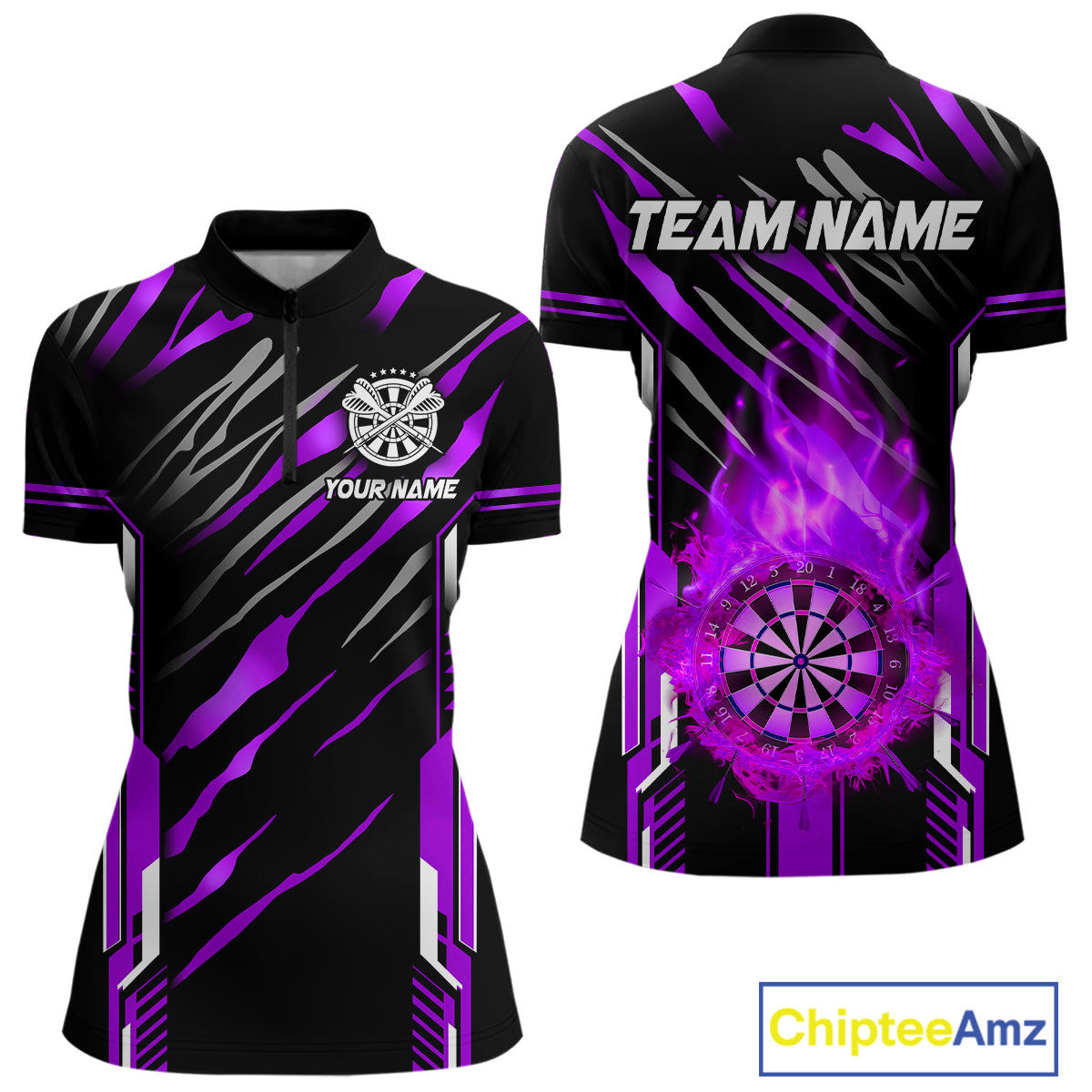 3D Darts Board Fire Flame Custom Dart Shirts For Women, Dart League Jerseys Team Uniform |Purple TDM5052