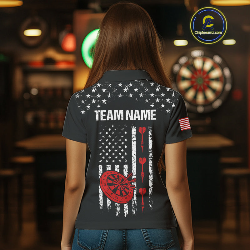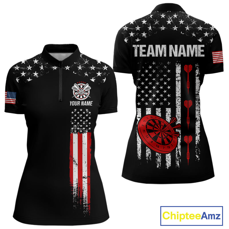 Personalized American Flag Darts Jersey For Women Custom Patriotic Darts Team Polo & 1/4 Zip Shirt TDM5077