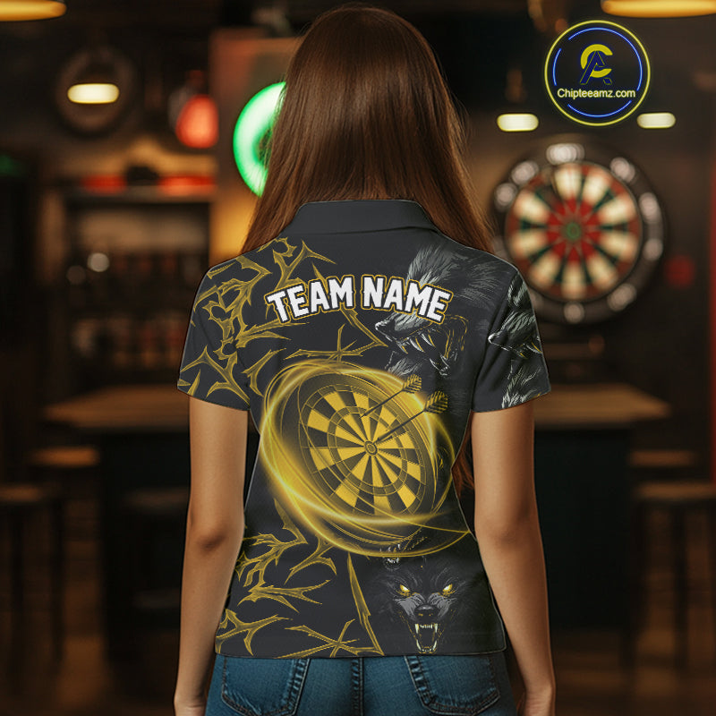 Personalized Wolf Dart Shirts For Women Custom Lights Dartboard Darts Team Jerseys |Gold TDM5094